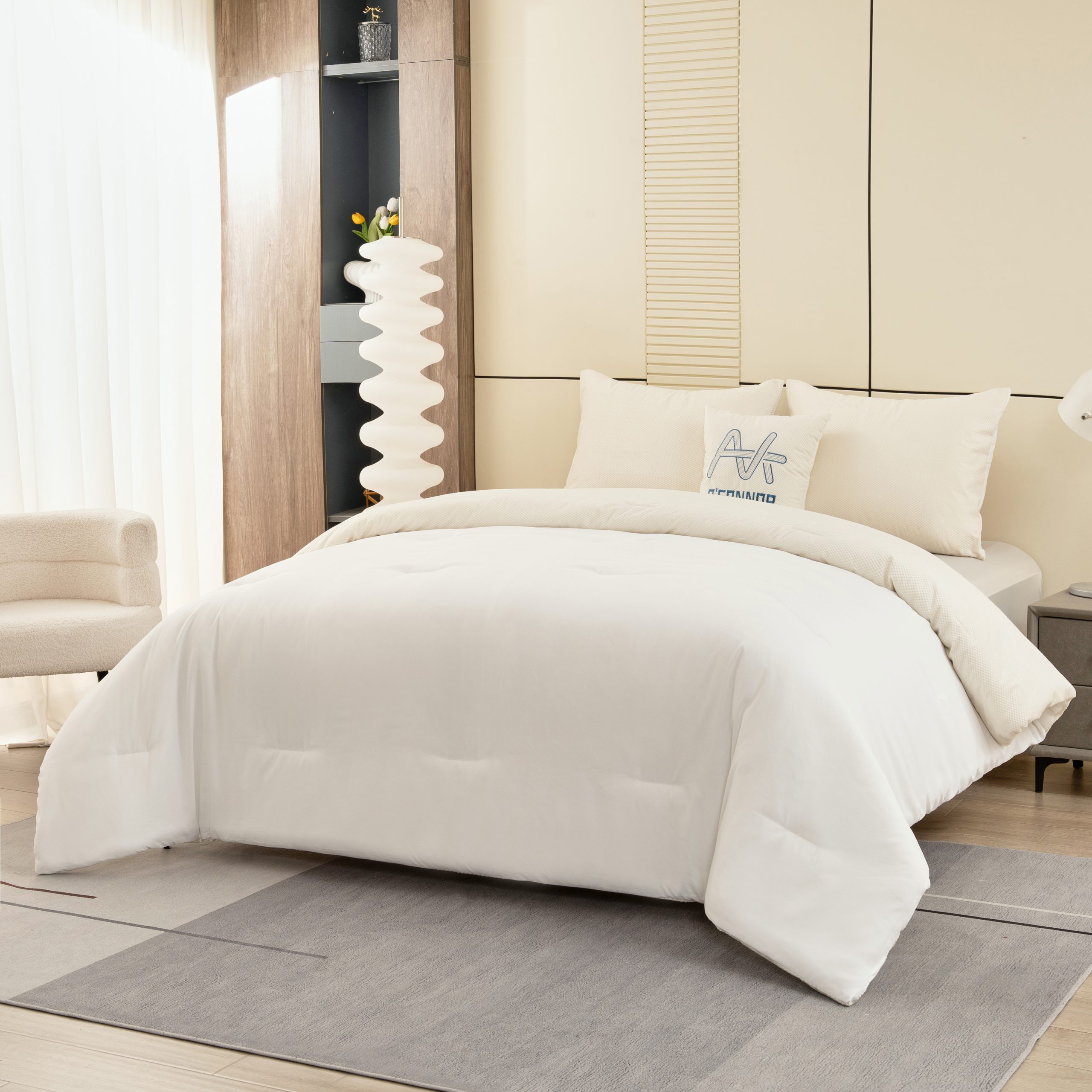 【Color & Aesthetics】 Choosing a versatile cream white, this set is softer than pure white and brighter than beige. Under natural light, it creates a serene, airy, and breathable visual effect in the bedroom. A favorite for minimalists, it instantly boosts the brightness and coziness of your living space.