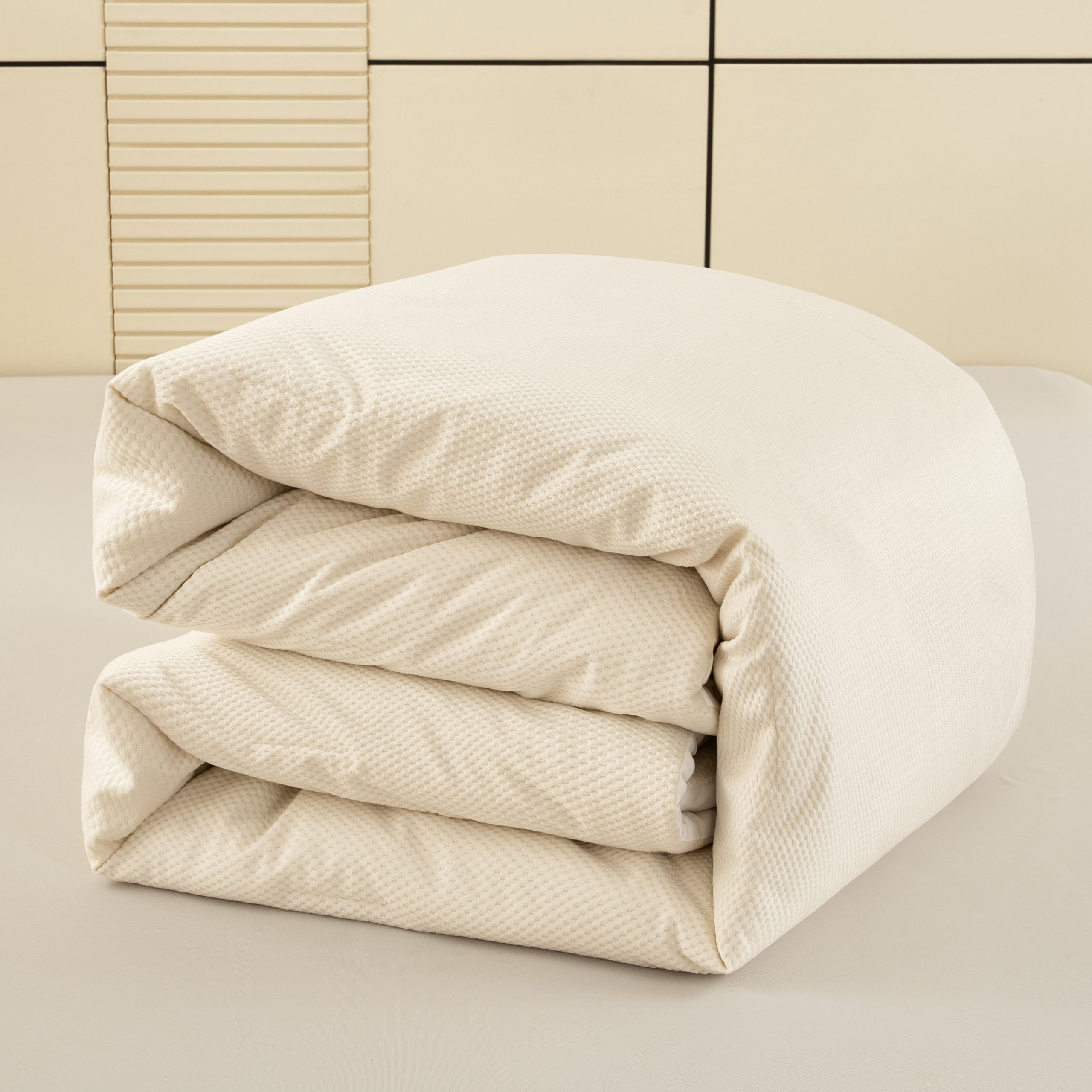 【Textural Craftsmanship】 The unique 3D waffle jacquard technique gives the fabric a rich sense of layering and tactile texture. This design not only enhances the visual luxury but also improves airflow. The skin-friendly softness ensures that every touch feels like a gentle spa treatment for your senses.