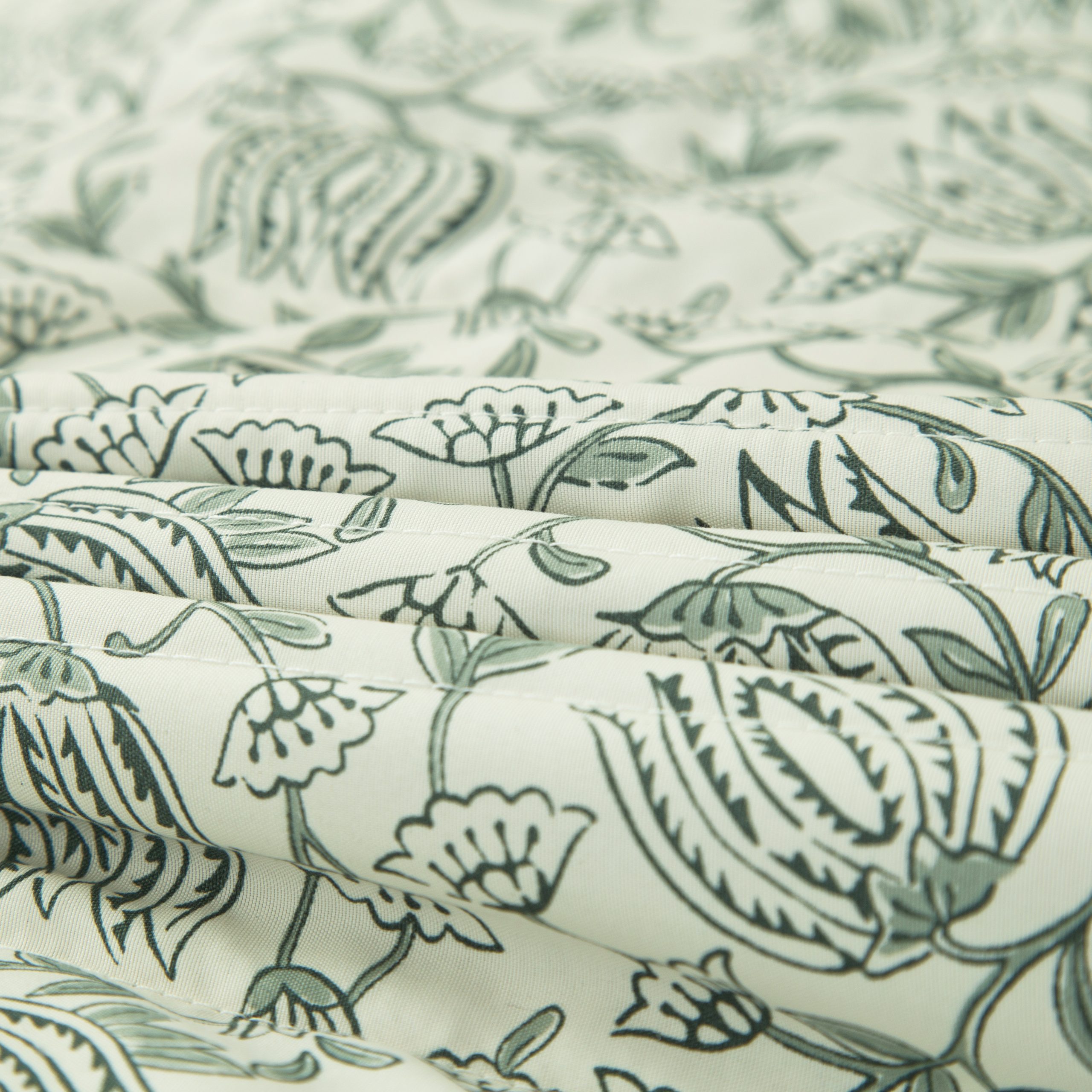 【Vintage Artistry】 Inspired by classical French estates, this set features an all-over botanical print with fine, hand-drawn strokes. The balance between vintage charm and modern aesthetic makes it a standout piece. The soft green tones offer a visually cooling effect, perfect for creating a nature-inspired home.